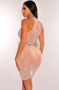 Animal Print Halter O-Ring Silver Chain Belted Cut Out Slit Maxi Dress