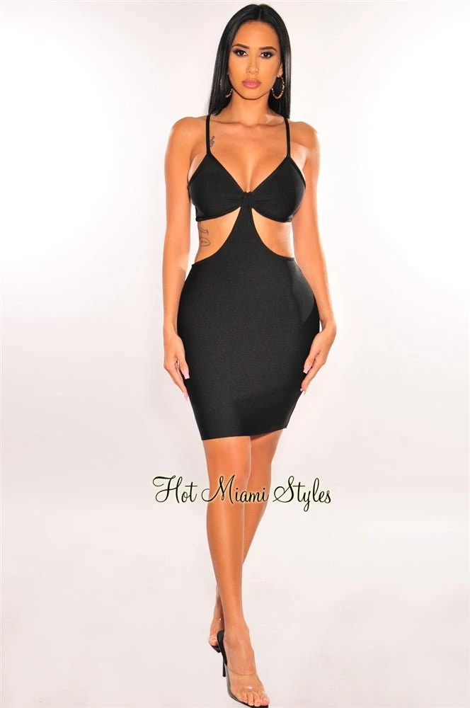 Keep βem cominβ back for more in this in style must have! Featuring a sexy v neck and cut out detail on a perfect bandage bodice to hug your curves.