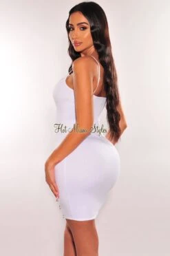 Show off an edgy and sexy look in this black faux leather dress. Featuring sultry cut out detail and ruching on a mini silhouette. A definite MUST-have.