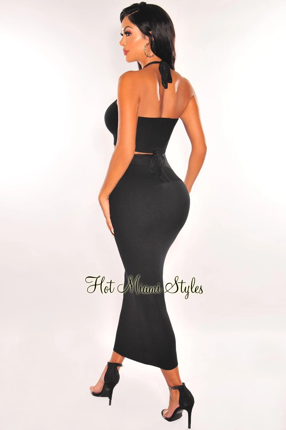 Earn some some serious style points and get ready for the weekend with this must-have two piece set. Featuring an ultra stretchy body hugging ribbed knit fabric top and matching skirt.