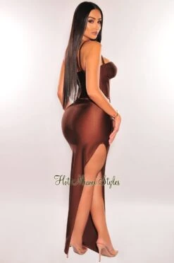 Deliver super chic vibes in this skirt two piece set. Made with a so ribbed knit bodice on a long sleeve wrap around crop top and matching midi skirt to complete the look.