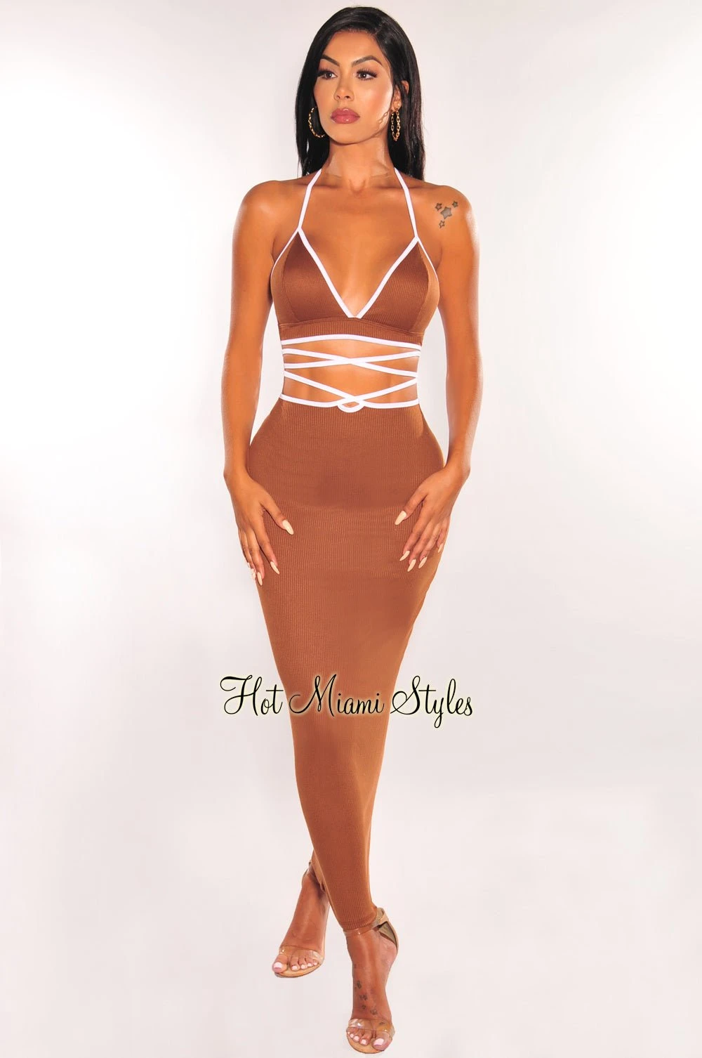 - Halter neckline