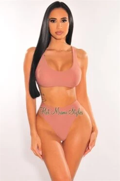 Babe, basics never looked this good! Amp up your bikini collection with this perfect fit tank high rise bikini, featuring a padded bust and a slip on matching bottoms.
