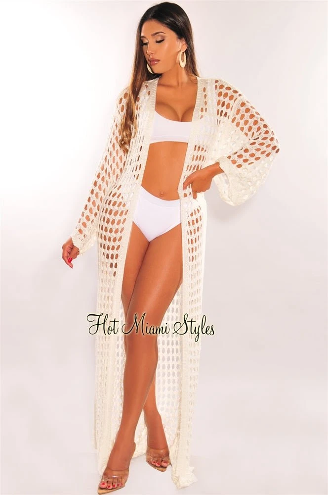 The perfect layering piece for all the swimwear looks, this tie up cover up is everything we are currently loving with a maxi length and a beautiful crochet design.
