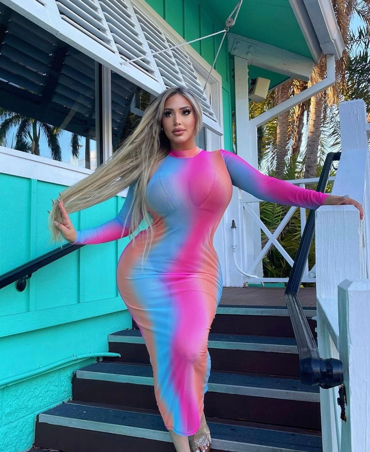 Be the center of attention on and off the beach in our rainbow swirl sheer mesh long sleeve cover up dress. Made with an ultra-stretchy fabric that will show off every curve.